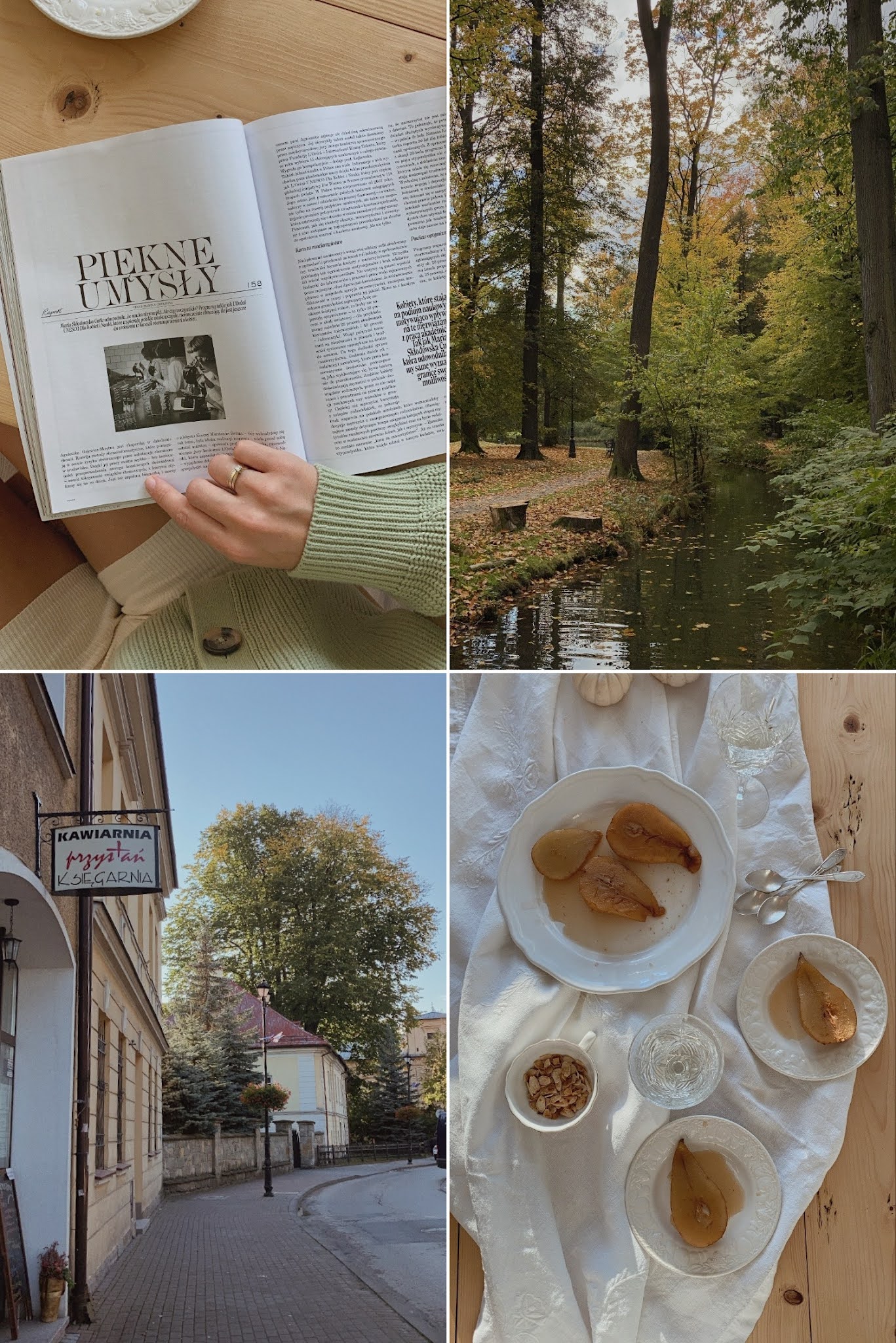 1. Biel, czerń i szarość. // 2. Gruszki w nowej odsłonie. // 3. Mój codzienny makijaż z miesiąca na miesiąc robi się skromniejszy… // 4. Napawam się widokami podczas jednego z wielu jesiennych spacerów. Tutaj akurat podczas odwiedzin u teściowej, wybrałyśmy się na spacer do Parku Żywieckiego.
